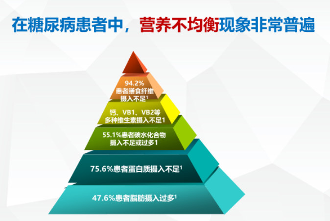 尤其是對(duì)科學(xué)飲食觀念不太了解的中老年人來說,很難把各類食品按照人體對(duì)于營(yíng)養(yǎng)物質(zhì)的需求進(jìn)行劃分和攝入,比如中老年糖尿病人因?yàn)閾?dān)心血糖升高不敢吃主食、不敢吃肉類,只敢吃蔬菜水果,就會(huì)導(dǎo)致身體中蛋白質(zhì)和碳水缺失,肌體供能不足,營(yíng)養(yǎng)攝入不均衡,嚴(yán)重可能會(huì)導(dǎo)致營(yíng)養(yǎng)不良。事實(shí)證明,在中老年糖尿病人群群體中,存在營(yíng)養(yǎng)不良和營(yíng)養(yǎng)不良風(fēng)險(xiǎn)的狀況確實(shí)非常明顯[3]。