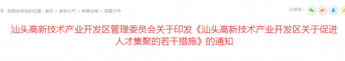 汕頭高新技術(shù)產(chǎn)業(yè)開發(fā)區(qū)為促進(jìn)人才集聚,發(fā)布人才獎(jiǎng)勵(lì)措施: