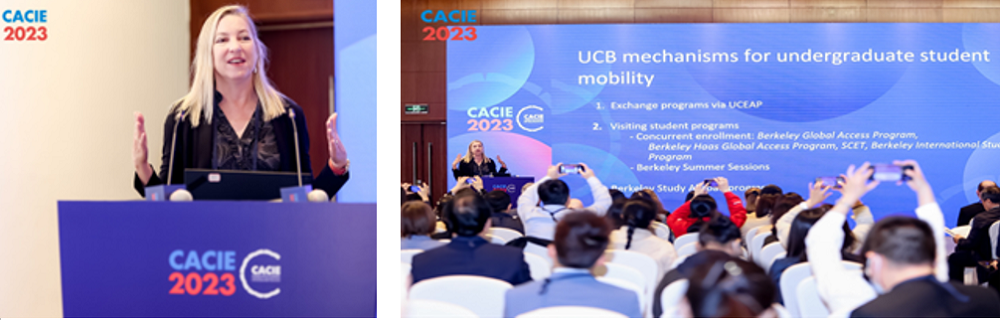 Colette Plum女士首先強(qiáng)調(diào)了加州大學(xué)伯克利分校非常的重視國際合作關(guān)系和學(xué)生的流動性,因?yàn)榭缥幕慕涣骱秃献鞯哪芰Α⑷蚧囊曇?、就業(yè)能力和完成學(xué)位學(xué)習(xí)的時間都是支持學(xué)生未來能獲得成功的重要因素。