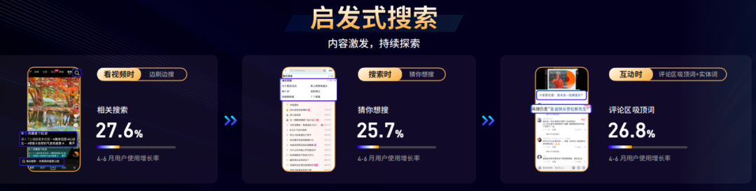 以抖音為例,平臺用戶日均搜索次數(shù)已經(jīng)達(dá)到3次,接近六成的用戶在打開APP后的30秒內(nèi)會進(jìn)行搜索,而沒有在抖音內(nèi)使用過搜索的用戶占比現(xiàn)在僅有6%。