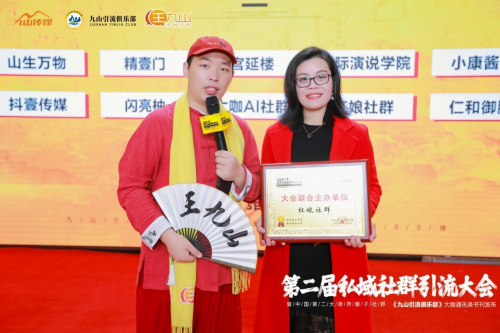 王九山作為本次大會的總導(dǎo)演和發(fā)起人,給大家分享了創(chuàng)辦《九山引俱樂部的》初心文化,據(jù)了解,王九山是暢銷書作家,擅長全網(wǎng)引流裂變與網(wǎng)絡(luò)霸屏推廣,出版暢銷書《全網(wǎng)引流爆粉實(shí)戰(zhàn)手冊》《搜索霸屏全網(wǎng)絡(luò)營銷之道》《IP打造》等書籍,過往14年的互聯(lián)網(wǎng)經(jīng)驗(yàn),服務(wù)了3000+知名品牌方、100+明星IP宣發(fā)、500多場跨界跨圈的行業(yè)大會,積累了36個私域微信,是《萬群匯聯(lián)盟》創(chuàng)始人,100萬私域粉絲學(xué)員資源,在社群裂變和私域引流方面有獨(dú)到的見解,創(chuàng)造多個裂變神話至今無人打破的記錄,2023年發(fā)起《九山引流俱樂部》得到大家廣泛的認(rèn)可!他的初心就是幫助別人的同時體現(xiàn)自己的價值,以利他的心態(tài)促進(jìn)圈子與圈子的鏈接,做對社會有意義有價值的貢獻(xiàn)!