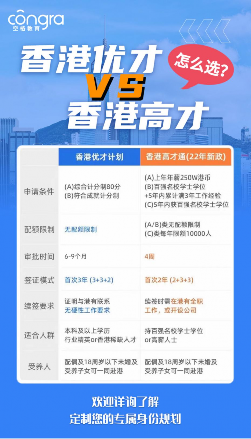今天空格教育跟大家來探討一下這個話題,看看香港優(yōu)才計劃和高才通哪個更適合你?