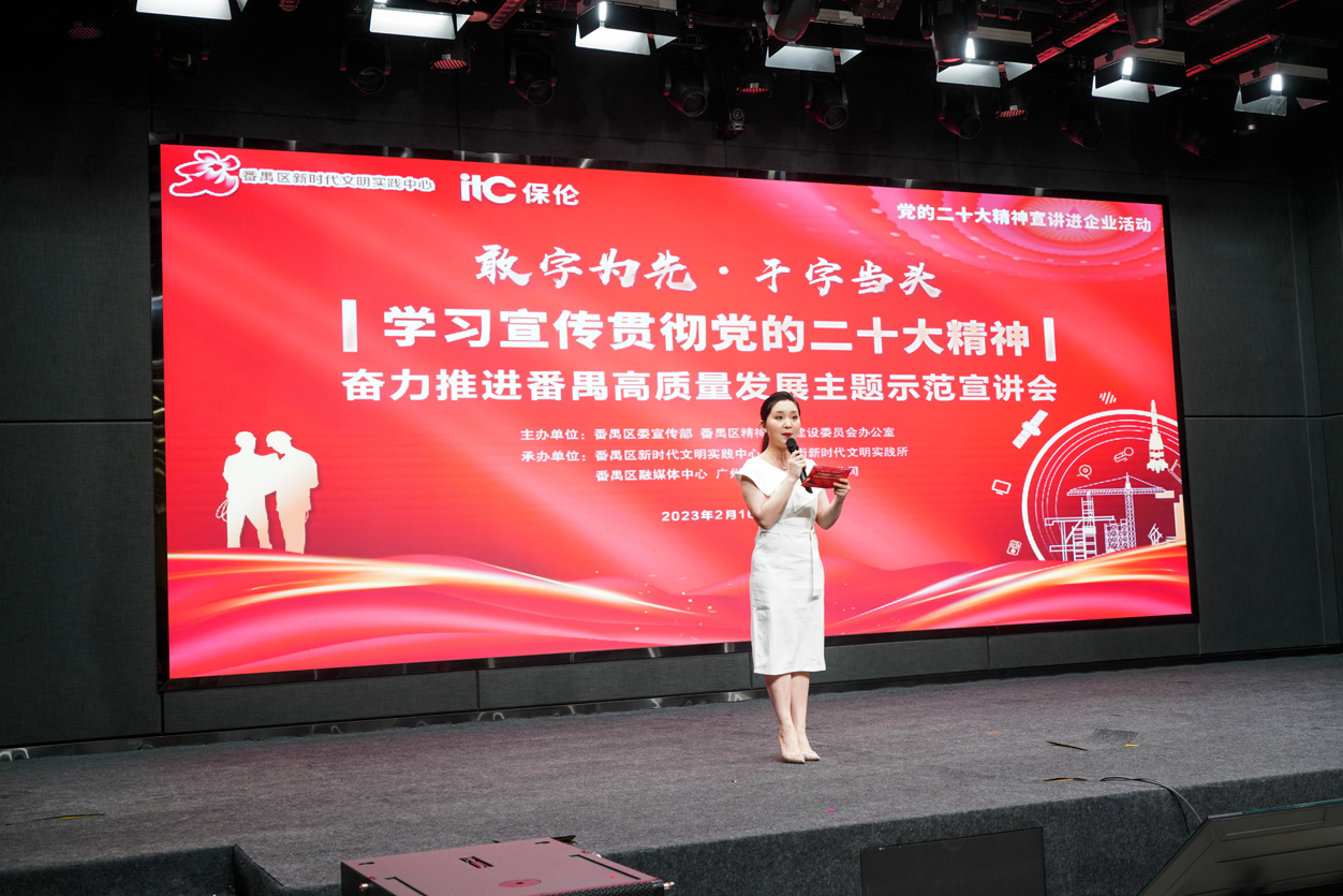 2月16日下午,由番禺區(qū)委宣傳部、區(qū)文明辦主辦,番禺區(qū)新時代文明實踐中心、東環(huán)街新時代文明實踐所、番禺區(qū)融媒體中心、廣州市保倫電子有限公司承辦的“敢字為先 干字當(dāng)頭——學(xué)習(xí)宣傳貫徹黨的二十大精神 奮力推進(jìn)番禺高質(zhì)量發(fā)展”主題示范宣講會在保倫電子itc召開。廣州市委講師團(tuán)副團(tuán)長區(qū)肇君,番禺區(qū)委宣傳部副部長、區(qū)文明辦主任張青,廣州市保倫電子有限公司副總裁阮勝林,相關(guān)職能部門、鎮(zhèn)街分管領(lǐng)導(dǎo)、宣傳辦主任,區(qū)基層理論宣講團(tuán)代表以及保倫電子員工代表共同參加活動。本次宣講會旨在深入學(xué)習(xí)宣傳貫徹黨的二十大精神,貫徹落實省委十三屆二次全會和省、市、區(qū)高質(zhì)量發(fā)展大會精神,通過聚眾力、匯眾智、集眾志,講述高質(zhì)量發(fā)展的故事,暢談高質(zhì)量發(fā)展未來,為番禺高質(zhì)量發(fā)展鼓士氣、聚人心、添動力!
