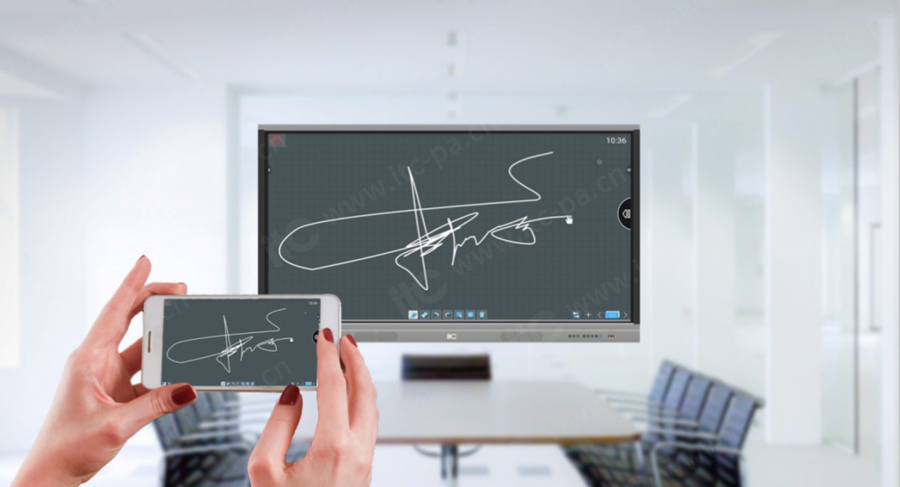 紅外感應(yīng)識(shí)別觸摸技術(shù),支持觸屏功能。區(qū)別于傳統(tǒng)黑板,itc會(huì)議一體機(jī)用手即可書寫,提供放大縮小、任意拖曳、手背擦除、紀(jì)要批注等各項(xiàng)功能,不用搭配輔助工具,手背即板擦,自由感應(yīng)手背擦除面積,也可一鍵清屏,還原干凈的書寫黑板。書寫的頁(yè)面無(wú)限延伸拓展,不用進(jìn)行擦除,會(huì)議內(nèi)容完整存儲(chǔ)。
