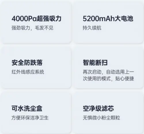 作為智能洗地機的必備功能,赤馬V7配置5200mAh大電池,持久續(xù)航實現(xiàn)全屋打掃。智能防跌落,能夠防止掃地機器人從低空跌落,降低受損程度,安全更放心。智能斷掃功能,通過全屋識別之后,能夠記憶上次打掃的位置,回到基站清理完畢可以回到原位置繼續(xù)清掃。塵盒可以進行水洗,塵盒容量很大,方便更環(huán)保,安全又衛(wèi)生,內(nèi)部擁有空氣級濾芯,能夠防止細微灰塵進入機體內(nèi)部,防止發(fā)生連電短路的情況,保證使用者的安全。赤馬也提供空氣凈化濾芯以及刷子等配件,在售后方面也有很大的保障。