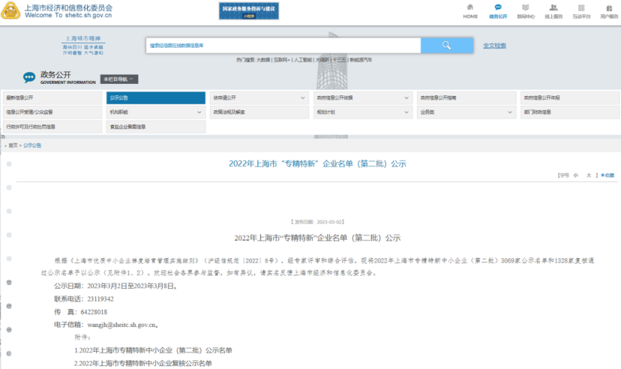 上海市經(jīng)信委官方公示