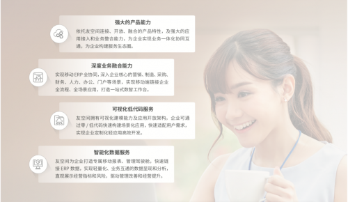 在市場紛紛搶抓協(xié)同辦公紅利的大環(huán)境下,友空間在今年將繼續(xù)深化“入口”的定位,著重提升四個能力。第 一是基礎(chǔ)的協(xié)同辦公能力,覆蓋傳統(tǒng)OA的所有功能;第二是統(tǒng)一的集成服務(wù)能力,無縫鏈接用友全系產(chǎn)品,并提供對接外部系統(tǒng)的接口能力;第三是深耕數(shù)據(jù)應(yīng)用能力,實現(xiàn)與數(shù)據(jù)應(yīng)用平臺內(nèi)外部融合,加強(qiáng)數(shù)據(jù)統(tǒng)計、數(shù)據(jù)報表、 BI 分析、數(shù)據(jù)決策等能力;第四就是加強(qiáng)低代碼開發(fā),ISV移動應(yīng)用開發(fā)等等,創(chuàng)造企業(yè)移動辦公新模式。