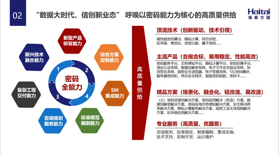 海泰方圓安全研發(fā)中心總經(jīng)理Frank安進(jìn)行了《密碼為數(shù)字政府筑牢數(shù)字安全屏障》的主題演講。Frank安表示,《國務(wù)院關(guān)于加強(qiáng)數(shù)字政府建設(shè)的指導(dǎo)意見》的發(fā)布,明確了國家對數(shù)字政 府建設(shè)的決心與方向。近期發(fā)布的《數(shù)字中國建設(shè)整體布局規(guī)劃》中,提出要強(qiáng)化數(shù)字技術(shù)創(chuàng)新體系和數(shù)字安全屏障“兩大能力”建設(shè),而密碼將能夠?yàn)閿?shù)字政 府中的數(shù)字安全屏障能力建設(shè)提供最有利的技術(shù)支撐。海泰方圓二十年來在密碼領(lǐng)域耕耘不怠,構(gòu)建了頂層咨詢規(guī)劃能力、頂流技術(shù)攻關(guān)能力、密碼產(chǎn)品和服務(wù)能力、工程實(shí)踐交付能力等密碼全能力,融合行業(yè)場景提供專業(yè)的密碼產(chǎn)品和定制化密碼應(yīng)用方案。隨后,F(xiàn)rank安分享了海泰方圓典型應(yīng)用案例。