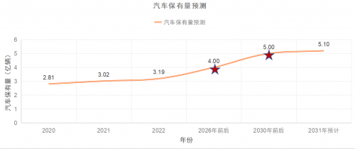 據(jù)公安部統(tǒng)計,2022年,全國機動車保有量達4.17億輛,駕駛?cè)丝偭客黄?億人。另外據(jù)智能路網(wǎng)人工智能科技研究院預(yù)測,我國將很快進入汽車保有量4億、5億的時代。大約在2026年前后,中國的汽車保有量能夠達到4億臺,成為世界第 一大汽車市場,2030年前后汽車保有量將有可能達到5億臺。