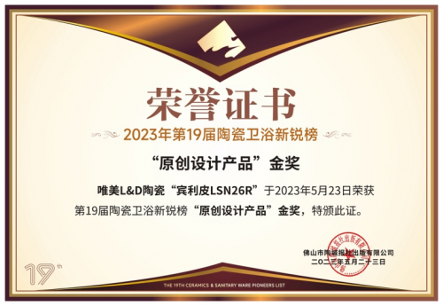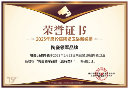 第19屆新銳榜吸引了200多家企業(yè)參與角逐,非凡盛況,競(jìng)爭(zhēng)激烈。唯美L&D陶瓷在超200家企業(yè)和品牌的競(jìng)逐中脫穎而出,攬獲“陶瓷領(lǐng)軍品牌”、“原創(chuàng)設(shè)計(jì)產(chǎn)品”金獎(jiǎng)以及“品質(zhì)交付創(chuàng)新獎(jiǎng)” 金獎(jiǎng)三項(xiàng)重量級(jí)大獎(jiǎng)。