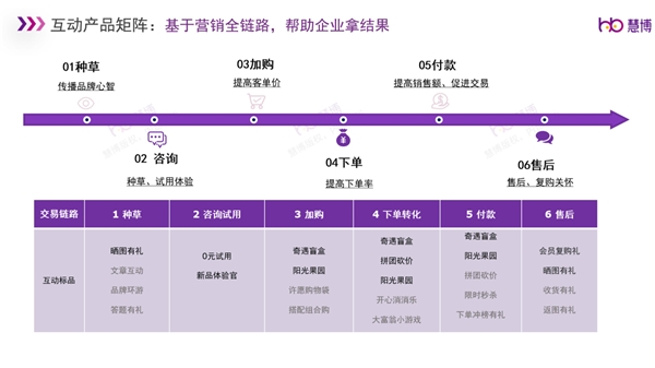 慧博雪鸮-互動產(chǎn)品基于營銷全鏈路,幫助商家逐步擊破會員在大促不同生命周期階段的痛點需求,通過將運營場景植入到用戶的認知和習慣里面,從而幫助商家持續(xù)不斷召回用戶,并進一步培養(yǎng)用戶的消費習慣。