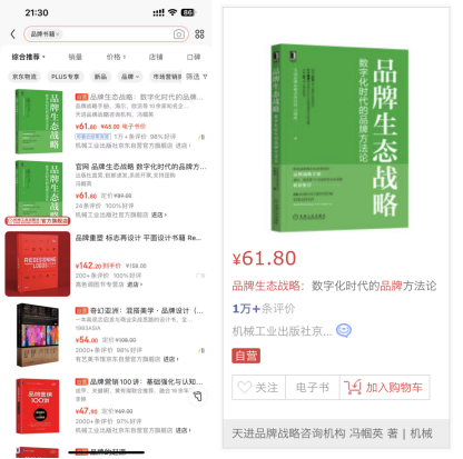 “今天是第七個‘中國品牌日’,我的第八本品牌專著《品牌生態(tài)戰(zhàn)略》在京東品牌類書籍中排名第 一,Mark一下。”