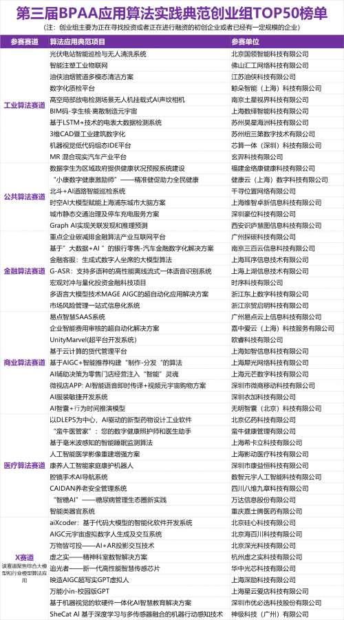 本屆BPAA大賽中,各算法項(xiàng)目團(tuán)隊(duì)除了在原有的公共算法、金融算法、醫(yī)療算法、工業(yè)算法、商業(yè)算法五大賽道開展角逐,更特設(shè)聚焦大模型和行業(yè)模型算法應(yīng)用的X賽道。同時(shí),本屆大賽在前兩屆基礎(chǔ)上設(shè)置了創(chuàng)新、創(chuàng)業(yè)兩個(gè)參賽組別,為更多算法項(xiàng)目和團(tuán)隊(duì)提供展現(xiàn)自我和落地機(jī)會(huì)。