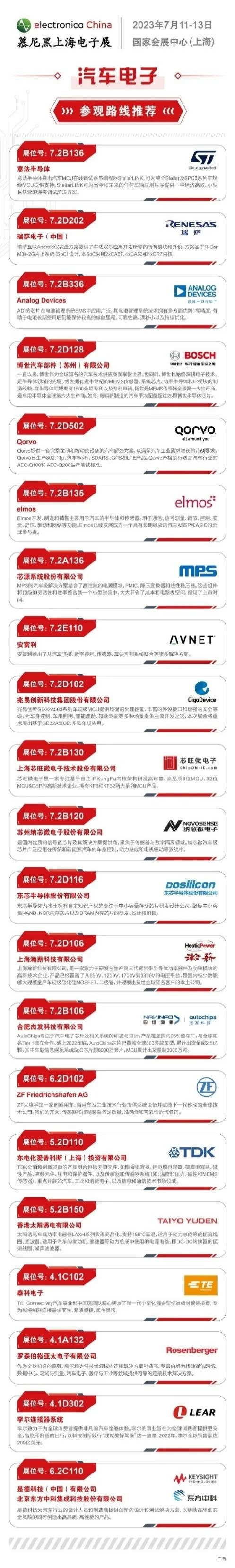展會現(xiàn)場將吸引車載芯片、車載功率半導(dǎo)體、傳感器、車規(guī)級無源元件、汽車連接器及線束、車載PCB等領(lǐng)域業(yè)界知名品牌紛紛入駐展會現(xiàn)場,展示創(chuàng)新產(chǎn)品及前沿技術(shù),呈現(xiàn)汽車電子全新解決方案。