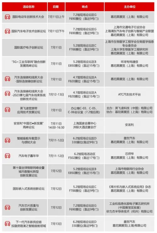 同期也將舉辦多場汽車行業(yè)論壇,大咖云集,聚焦自動駕駛、驅(qū)動電機(jī)、智能電池管理系統(tǒng)與系統(tǒng)集成技術(shù)、新能源汽車、車聯(lián)網(wǎng)技術(shù)、車身電子技術(shù)、汽車驅(qū)動與動力電池技術(shù)、智能座艙、汽車智能芯片、汽車線束等熱門主題,探討未來發(fā)展趨勢與技術(shù)創(chuàng)新,為企業(yè)挖掘新商業(yè)模式與經(jīng)濟(jì)增長點(diǎn)提供嶄新思路。