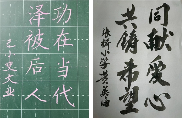 教室照明公益改造行動不僅改善了辦學(xué)條件,也保護到孩子們的眼睛。己吾城小學(xué)校長史文業(yè)及張橋小學(xué)副校長黃英海感恩企業(yè)的無私奉獻,分別寫下“功在當(dāng)代 澤被后人”、“同獻愛心 共鑄希望”贈言,鳴謝助學(xué)企業(yè)對青少年視力健康的守護。
