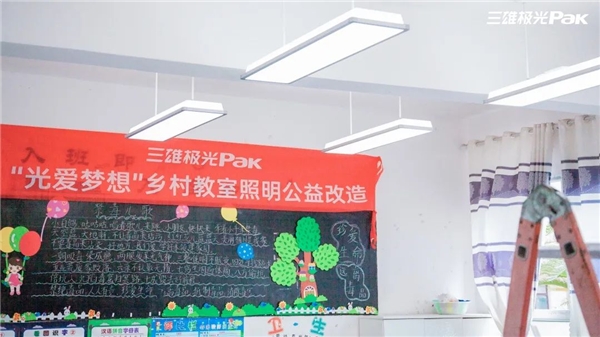 三雄極光關(guān)注到鄉(xiāng)村教育中的困難,積極發(fā)揮自身在教育照明方面的優(yōu)勢,勇?lián)鐣?zé)任,發(fā)起“光愛夢想 鄉(xiāng)村教室照明公益改造”工作,賦能鄉(xiāng)村教育,旨在為欠發(fā)達地區(qū)的鄉(xiāng)村兒童青少年提供健康舒適的校園光環(huán)境,助力孩子健康成長。