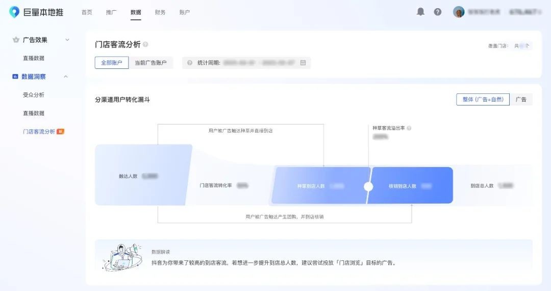 不少商家以為巨量本地推帶來的就是團購到店核銷的客流,實際上這些客流只是冰山一角,巨量本地推還帶來了看似隱形的“種草”客流,這部分客流量更大,但也更難以捕捉。「門店客流分析」報表實際上就是平臺通過計算“種草”客流的軌跡,得出較為精準的計算結(jié)果,使商家能夠準確把握本地推帶來的實際客流。