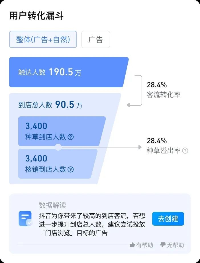 很多商家做抖音推廣往往只關(guān)注團購訂單量和到店核銷數(shù)據(jù),但實際上有大量的“種草”客流被忽略了。近期,巨量本地全端上線「門店客流分析」報表功能,這一免費功能披露了廣告和自然種草數(shù)據(jù)。商家借助這些數(shù)據(jù)能比較清晰地看出,在抖音營銷過程中,有多少客流是被“種草”來的。
