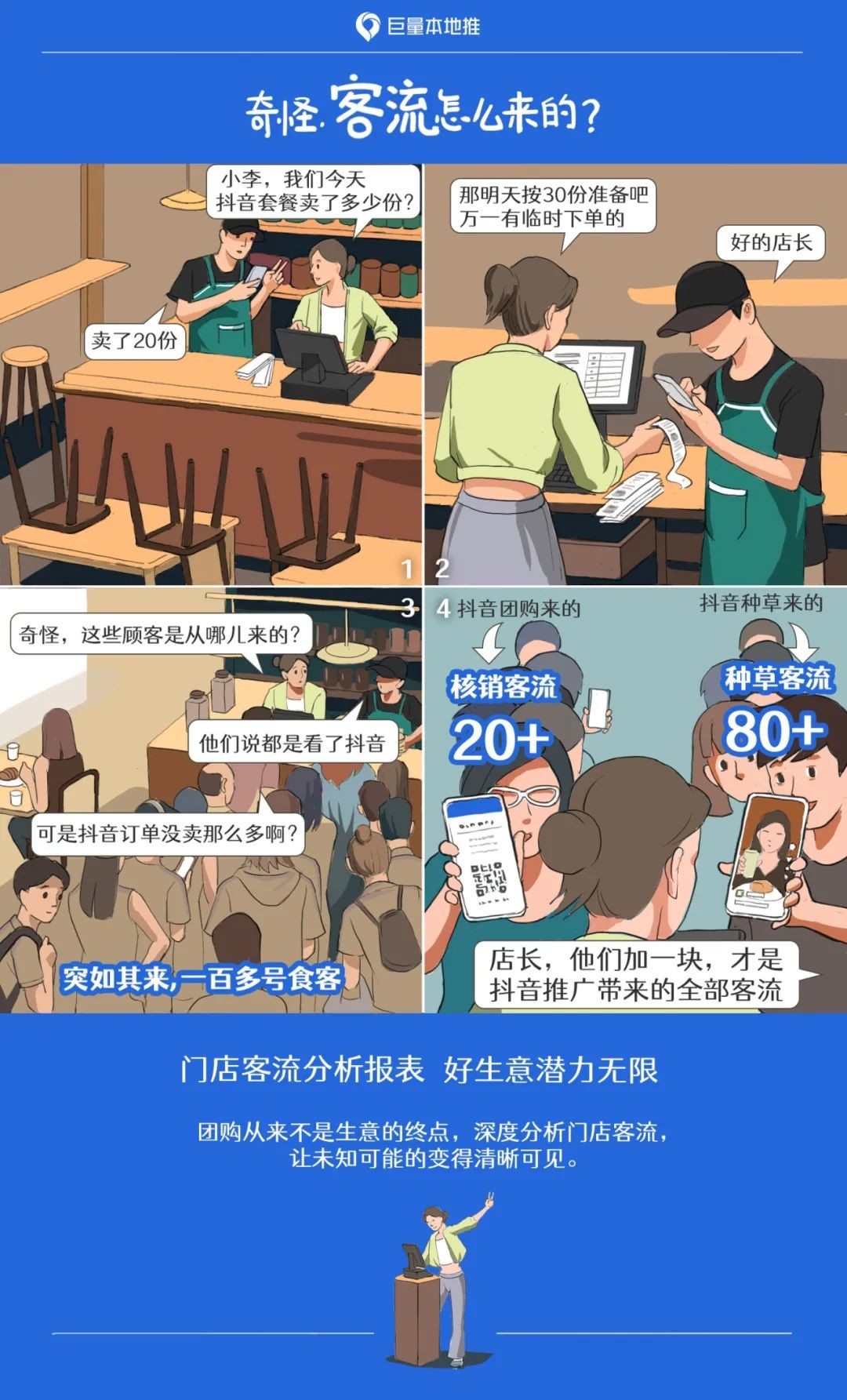 看了這則漫畫你理解門店客流的秘密了嗎?按照團購訂單備菜為啥不夠吃?明明客戶都是抖音來的,為啥跟團購的數(shù)據(jù)不一致,還多出這么多?