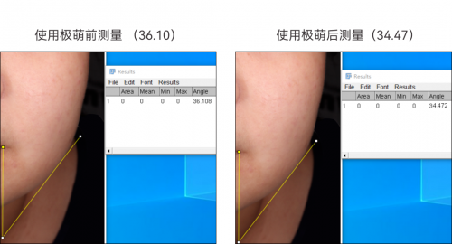 效果:EMS微電流快速提拉,使用前后效果(V臉角度變化)