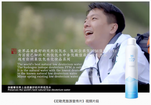 2012年,國土資源部地下水礦泉水等國家權(quán) 威檢測部門來到當(dāng)?shù)?,對彌玥泉水(天山冰川溫泉水)進行38個批次,3100次取樣檢驗,報告顯示:彌玥泉是天然的小分子團低氘水、富含偏硅酸及硫硒硅等微量元素,具有補水修護雙重功效,是天然的美容之水。