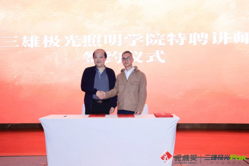 會議上,三雄極光品牌管理中心總監(jiān)李全與嘉賓們進行簽約儀式,隆重聘請彭海浪、蔣繆奕、施恒照、余顯開等嘉賓為特聘講師,將進一步擴大三雄極光照明學(xué)院實力,為打造學(xué)習(xí)實踐、圈層交流、產(chǎn)學(xué)設(shè)融合、跨界合作為一體的平臺體系提供專業(yè)力量。