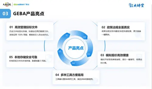 工欲善其事,必先利其器。作為一家數(shù)字化軟件企業(yè),在投標(biāo)領(lǐng)域,廣聯(lián)達致力于打造便捷化工具,讓投標(biāo)舒心、放心、安心、省心。借助本次賦能大會,廣聯(lián)達重磅發(fā)布了投標(biāo)服務(wù)GEBA產(chǎn)品。產(chǎn)品圍繞施工企業(yè)投標(biāo)全過程,重點針對用戶尋找投標(biāo)底稿時間長、資信文件管理成本高、政策法規(guī)查找慢、模擬報價效率低、投標(biāo)工具分散使用等問題,提供文件庫、資信庫、知識庫、模擬報價、工具箱等五大功能,以一站式解決方案,提高企業(yè)投標(biāo)效率。