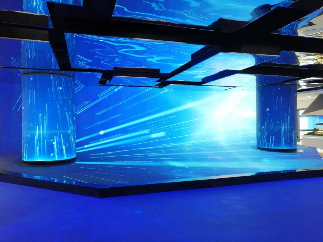 在內容塑造上它融入了雄安碳綜合管理中心業(yè)務布局的信息亮點,美輪美奐的顯示效果有效展示當前智慧能源領域的前沿技術成果、應用和解決方案。良好的沉浸式范圍塑造,對往來游客形成深刻印象,體驗顯示高科技帶來的視覺震撼。