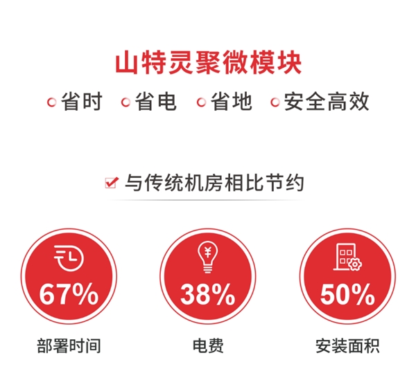 山特靈聚微模塊排柜內(nèi)采用冷熱通道全封閉系統(tǒng),制冷效率更優(yōu),空調(diào)采用 EC 變頻壓縮機(jī),PUE 值可低至 1.34,綠色節(jié)能,相對(duì)傳統(tǒng)機(jī)房可節(jié)省 38% 的電費(fèi)開(kāi)支。