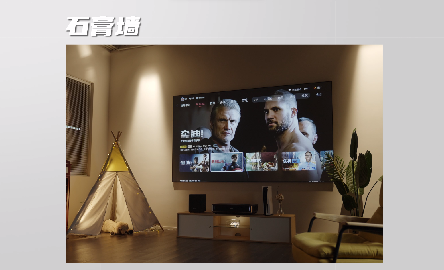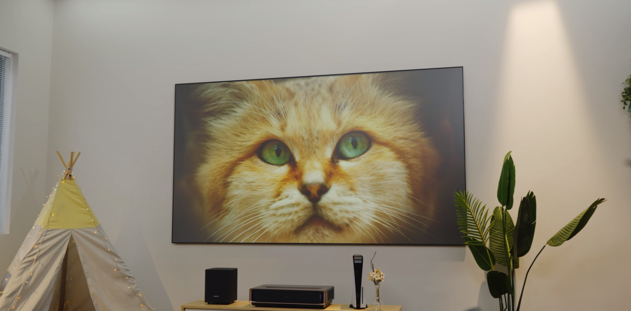 別看L5K擁有超百吋的屏幕,120英寸的屏幕重量卻只有21公斤,是同等尺寸液晶電視重量的五分之一。無(wú)論客廳墻面是藝術(shù)墻、龍骨墻、石膏墻還是巖板墻,它都一視同仁、來(lái)者不拒,通通都能“裝”,留足裝修自由。