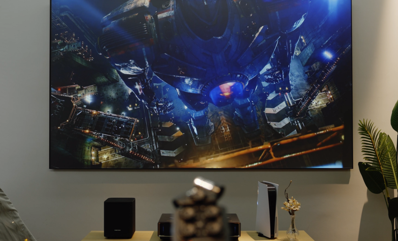 海信激光電視L5K的寬度為1.5米,長(zhǎng)度為2.67米,屏幕總面積可以和小浴室的面積相媲美。坐在僅僅4米遠(yuǎn)的距離看這么大的屏幕,無(wú)論是玩游戲、看球賽還是看電影,視覺(jué)效果都足夠震撼,球員的假動(dòng)作、或是電影中的小細(xì)節(jié),都能一覽無(wú)遺。