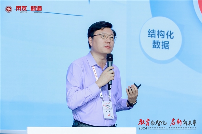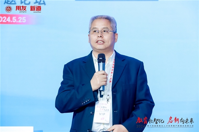 新道科技股份有限公司新工科事業(yè)部副經(jīng)理、IT 領(lǐng)域?qū)<胰斡莱贪l(fā)表題為“產(chǎn)業(yè)案例實訓(xùn)實踐——大數(shù)據(jù)專業(yè)從基礎(chǔ)實驗實訓(xùn)到產(chǎn)業(yè)案例綜合實訓(xùn)轉(zhuǎn)型升級”的主題演講。他在演講中圍繞大數(shù)據(jù)專業(yè)實驗實訓(xùn)的轉(zhuǎn)型升級展開,介紹了時代背景、現(xiàn)狀、轉(zhuǎn)型升級路徑及未來展望。他強調(diào),在政策推動下,大數(shù)據(jù)產(chǎn)業(yè)迅速發(fā)展,實驗實訓(xùn)需緊跟產(chǎn)業(yè)需求,通過教學(xué)資源、教學(xué)方式和內(nèi)容的更新,提升教育質(zhì)量,培養(yǎng)復(fù)合型人才,助力數(shù)字化轉(zhuǎn)型。