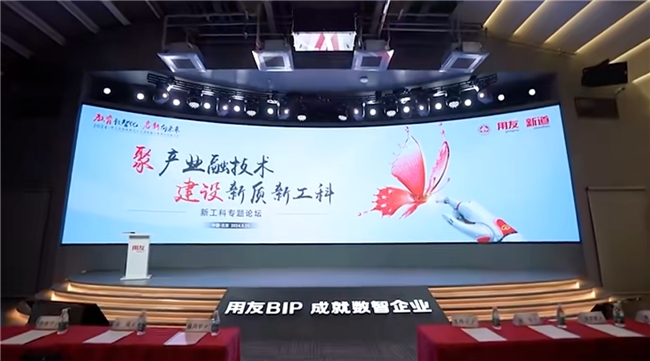 25日下午,新工科專題論壇在北京用友產(chǎn)業(yè)園順利舉辦。來自全國300所院校的600余位領(lǐng)導(dǎo)、專家、學(xué)者共聚一堂,聚焦“聚產(chǎn)業(yè)融技術(shù) 建設(shè)新質(zhì)新工科”,共話數(shù)智教育高質(zhì)量發(fā)展新模式,共商工科人才數(shù)智化培養(yǎng)新路徑。論壇聚焦新工科領(lǐng)域數(shù)智化人才的培養(yǎng)議題,深入探討了產(chǎn)業(yè)行業(yè)的最新發(fā)展趨勢,通過實例分享的方式,闡述產(chǎn)學(xué)合作以及協(xié)同教育的成功案例,并展示了新道新工科在數(shù)智教育領(lǐng)域取得的卓越成就。論壇由新道科技股份有限公司副裁鄭洪濱主持。