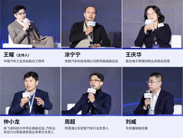 圓桌討論環(huán)節(jié),中國(guó)汽車工業(yè)協(xié)會(huì)副總工程師王耀,嵐圖汽車科技有限公司智駕高級(jí)副總監(jiān)涂寧寧,聯(lián)合電子跨域控制業(yè)務(wù)部總經(jīng)理王慶華,英飛凌科技大中華區(qū)高級(jí)總監(jiān)、汽車業(yè)務(wù)動(dòng)力與新能源系統(tǒng)業(yè)務(wù)單元負(fù)責(zé)人仲小龍,阿里通義實(shí)驗(yàn)室汽車行業(yè)負(fù)責(zé)人周超,東軟睿馳副總裁劉威共同圍繞“AIDV時(shí)代下,汽車軟件的生態(tài)融合與創(chuàng)新突破”主題進(jìn)行討論,探討AI定義汽車的未來趨勢(shì),并結(jié)合實(shí)際案例提出生態(tài)融合的創(chuàng)新路徑,為AIDV 時(shí)代生態(tài)協(xié)同發(fā)展提供多元思路與深刻見解。