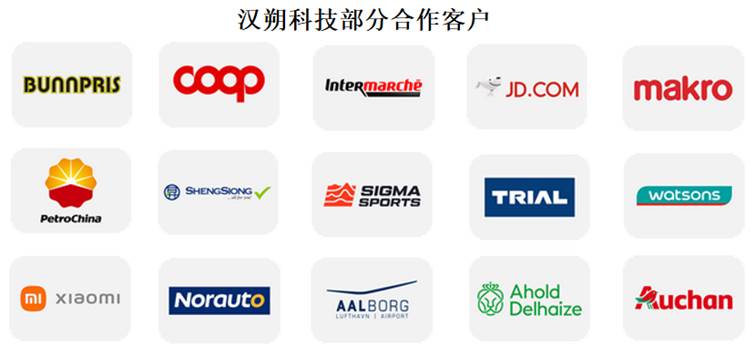 目前,漢朔科技已經(jīng)與歐尚(Auchan)、阿霍德?德?tīng)柡F潱ˋhold)、奧樂(lè)齊(Aldi)、華潤(rùn)萬(wàn)家、多點(diǎn)集團(tuán)等國(guó)內(nèi)外零售頭部企業(yè)形成戰(zhàn)略合作關(guān)系。其中,法國(guó)六大零售商超中漢朔科技已正式服務(wù)歐尚、E.Leclerc、Systeme U和ITM四家,荷蘭最大的日用零售商Ahold、德國(guó)最大的連鎖零售超市Aldi分別于2018年、2020年開(kāi)始與漢朔科技合作。