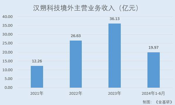 2021-2023年及2024年1-6月,漢朔科技境外主營(yíng)業(yè)務(wù)收入分別為12.26億元、26.63億元、36.13億元、19.97億元,占當(dāng)期主營(yíng)業(yè)務(wù)收入的比例分別為76.04%、93.05%、95.72%、94.32%。2024年上半年,漢朔科技境外收入占比小幅下降,主要系國(guó)內(nèi)收入同比快速增長(zhǎng)。