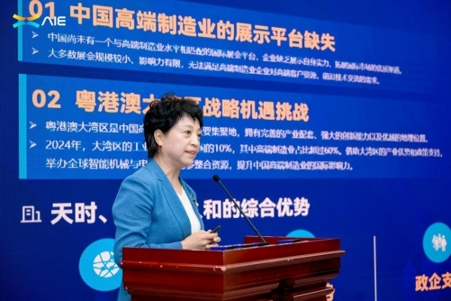 劉英秘書長對博覽會進行了全面推介。她表示,AIE的誕生源于中國高端制造業(yè)的崛起和粵港澳大灣區(qū)在全球科技版圖中日益重要的地位(科技集群創(chuàng)新指數(shù)連續(xù)五年全球第二)。本屆博覽會以“灣區(qū)智造·全球共享”為主題,旨在搭建中國與世界高質(zhì)量貿(mào)易的國際交流平臺,聚合中國高質(zhì)量企業(yè)集體出海。博覽會努力目標為:對標國際三大品牌展會,匯聚全球頂尖企業(yè)首發(fā)新品,展示未來十年尖端科技;打造“思想風暴眼”,邀請全球頂尖智庫專家、企業(yè)家共議前沿趨勢;構(gòu)建“生態(tài)加速器”,破除壁壘,催化跨國合作;成為“政策風向標”,發(fā)布解讀最新產(chǎn)業(yè)政策。