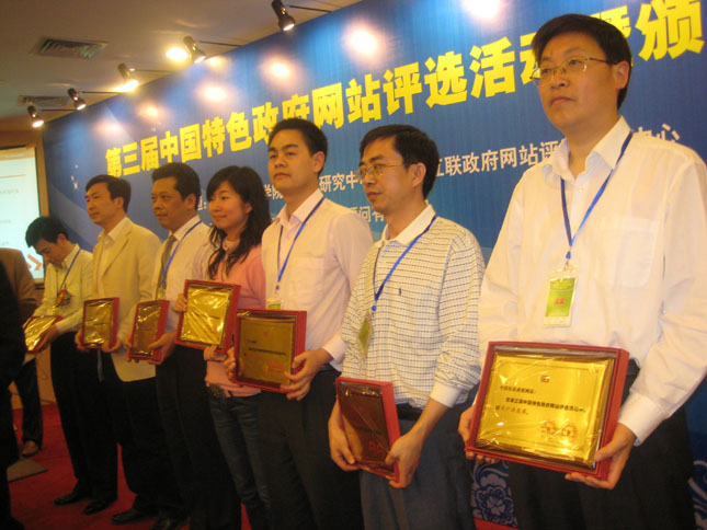 “用戶滿意獎(jiǎng)”獲獎(jiǎng)單位:六安市人民政府網(wǎng)站、“網(wǎng)上宿遷”、“中國貴陽”、“中國杭州”、“上海·楊浦”、“上海徐匯”、“佛山·禪城”、中國儀征政府網(wǎng)站、北京旅游信息網(wǎng)、“浙江交通”。