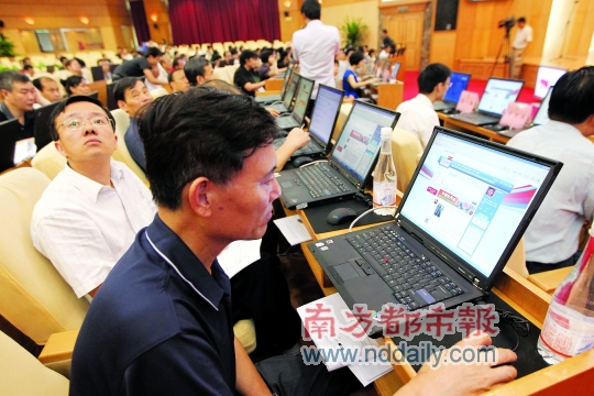而也有人一副“大師”模樣,比如數(shù)月前曾以“倉(cāng)央嘉措”體打油詩(shī)調(diào)侃省“兩會(huì)”的委員蘇忠陽(yáng),就連電腦都懶得用,直接用手機(jī)下載用戶端。而“微博爆料大王”韓志鵬,更是在開班15分鐘內(nèi)就把開班照片發(fā)上新浪微博,相當(dāng)“神速”。此微博一發(fā),就有網(wǎng)友留言“求賬號(hào)”、“有建設(shè)性”、“好期待”;也有網(wǎng)友評(píng)論說(shuō)“又是這些面子工程”,“有咩用?唔係叫D委員個(gè)個(gè)上嚟開微博就得了咩?”
