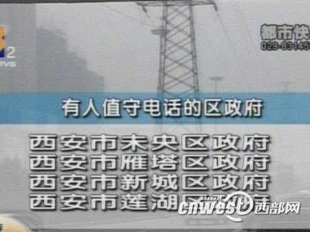 記者撥打的結(jié)果是,西安市臨潼區(qū)、西安市碑林區(qū)、西安市灞橋區(qū)、西安市閻良區(qū)等四個區(qū)政府值班電話一直沒有人接聽,而西安市未央?yún)^(qū)、西安市雁塔區(qū)、西安市新城區(qū)、西安市蓮湖區(qū)等四個區(qū)政府的值班電話一直有人接聽。
