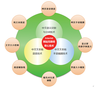 從目前信息無障礙應用技術的發(fā)展情況來看,網(wǎng)站無障礙化的技術主要組成部分見左下圖: