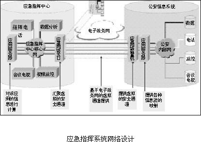 電子政務(wù)網(wǎng)是由內(nèi)網(wǎng)、專網(wǎng)和外網(wǎng)組成,如果要承載龐大的突發(fā)公共事件應(yīng)急信息系統(tǒng),就必須具備很大的帶寬保障、多業(yè)務(wù)承載能力和網(wǎng)絡(luò)自適應(yīng)能力,同時(shí)考慮到應(yīng)急信息系統(tǒng)不僅僅是政務(wù)范疇,甚至是社會范疇,因此在信息網(wǎng)絡(luò)的架構(gòu)方面也必須考慮到和公眾網(wǎng)絡(luò)以及專網(wǎng)的連接。在這樣的信息系統(tǒng)中,從信息的采集、匯集、存儲和計(jì)算,最終為決策提供依據(jù),通過將決策高效分解、存儲、下達(dá)和執(zhí)行,來保障能夠最大限度地減少突發(fā)公共事件給人民生命財(cái)產(chǎn)安全帶來的損害。