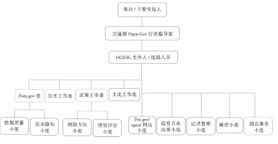 圖1 美國(guó)交通部的開(kāi)放政府組織架構(gòu)