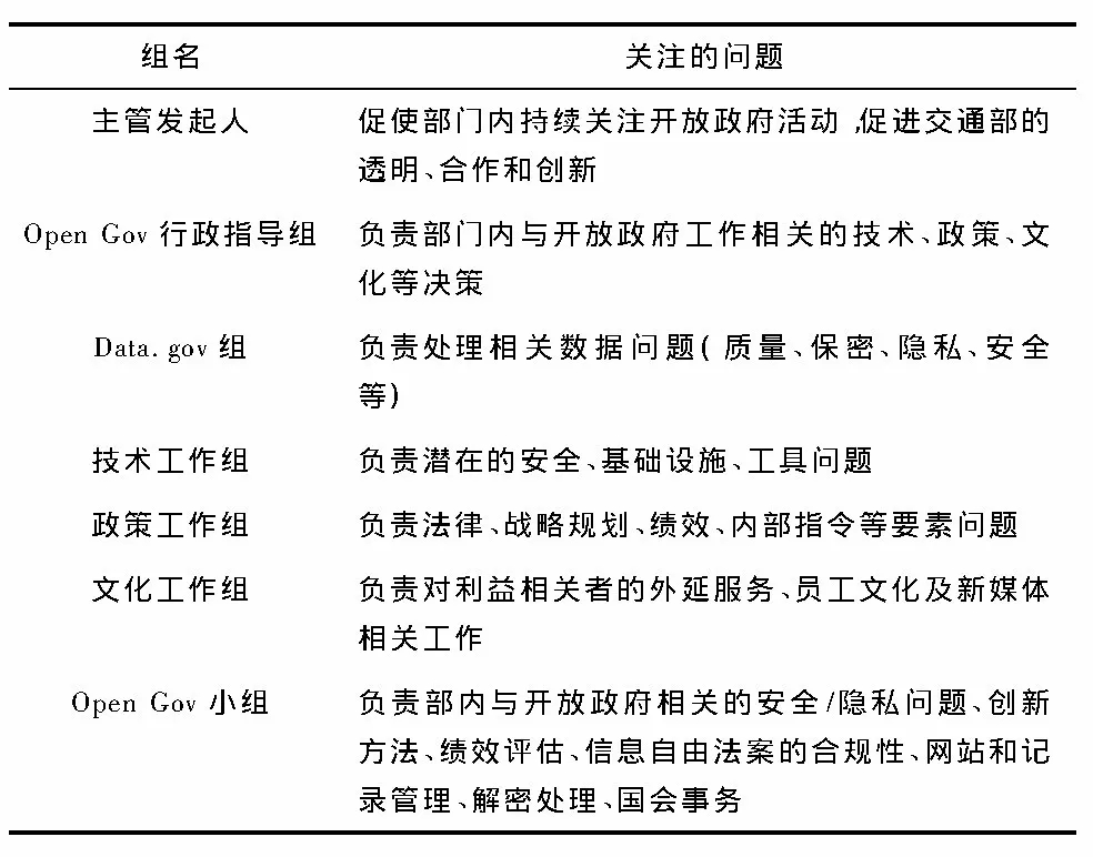 表1 DOT開(kāi)放政府組成及關(guān)注的問(wèn)題