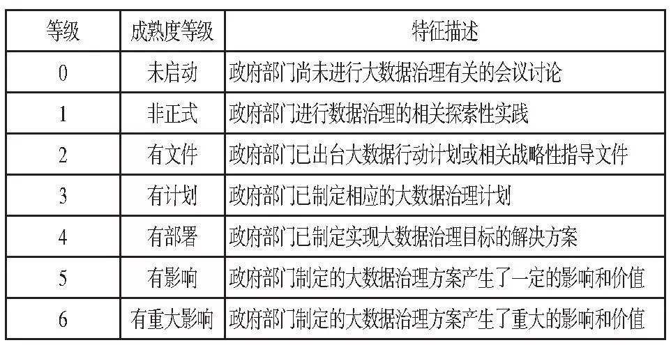 表3 政府大數(shù)據(jù)成熟度等級劃分