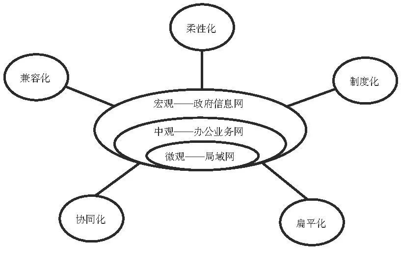 第一個(gè)層次是微觀層次, 是指設(shè)立政府局域網(wǎng), 就是在把各單位非涉密類文件進(jìn)行電子化處理, 集中發(fā)布在內(nèi)網(wǎng)上;第二個(gè)層次是中觀層次, 是指設(shè)置辦公業(yè)務(wù)網(wǎng), 主要涉及的是平行單位相關(guān)業(yè)務(wù)的數(shù)據(jù), 對(duì)這些數(shù)據(jù)進(jìn)行互通連接, 統(tǒng)一進(jìn)行管理;第三個(gè)層次是宏觀層次, 是指設(shè)立政府信息網(wǎng), 這主要是對(duì)政府部門(mén)實(shí)行一體化的管理, 增強(qiáng)數(shù)據(jù)的互聯(lián)互通, 切實(shí)形成構(gòu)建全國(guó)統(tǒng)一的數(shù)據(jù)開(kāi)放模式的整體合力。