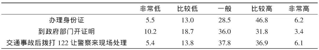 表1 政府有關(guān)部門辦事效率的市民評價(jià) (百分比, %)
