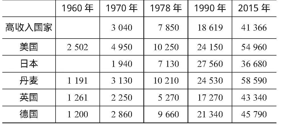 表1 發(fā)達(dá)國家人均GNI發(fā)展階段