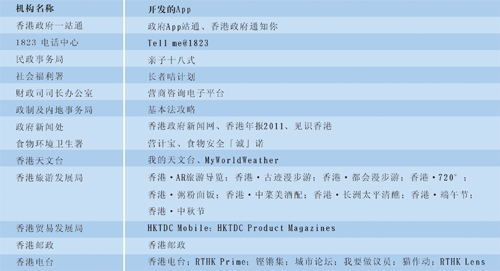 表1 香港政府有關部門的App情況